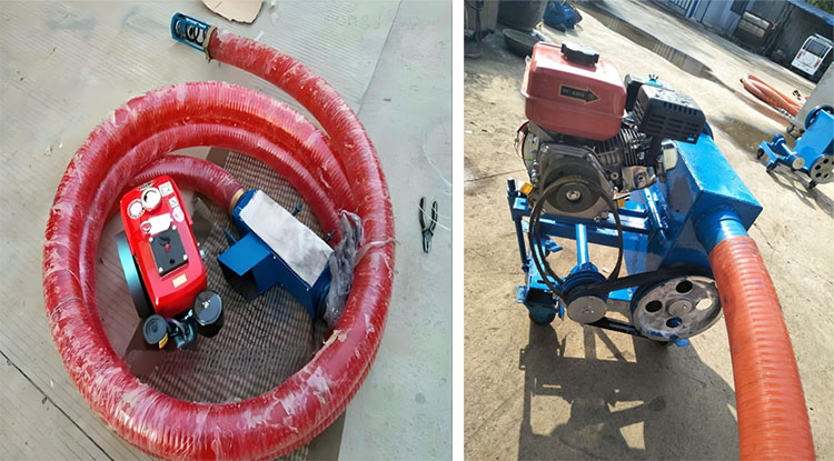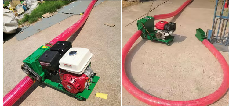 移动式柔性柴油驱动螺旋输送机:是在柴油机装置底部加装一个可移动的地盘,可由拖拉机或汽车牵引移动,灵活性高,可以快速转移到不同粮堆、仓库或车辆旁边进行作业,可用于农村晒场、中小型粮库、粮食转运站。