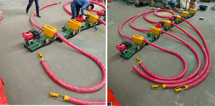 柔性柴油驱动螺旋输送机工作时,先启动柴油发动机,为整机提供动力,动力通过传动系统传递驱动位于柔性软管内的螺旋弹高速旋转,当需要输送的物料从进料口加入后,旋转的螺旋叶片会推动物料沿着输送管道向前移动,直至出料口卸料。管道是柔性的,可以在一定范围内灵活调整出料口的方向和位置,满足不同的装卸场景。