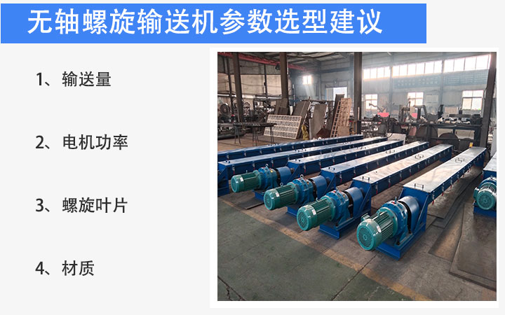 在选择一台合适的设备时,要确保设备适配实际工况。输送量比较重要,物料流动性好则输送量略大,粘性极大则输送量减小,倾斜安装时每倾斜10度,输送量需降低5%-10%。电机功率主要用于克服物料与衬板的摩擦,参考功率适用于常规输送长度,若输送长度超过一定值,需适当加大功率。螺旋叶片常用16Mn锰钢或耐磨合金钢,壳体根据防腐需求选用304不锈钢或碳钢Q235。